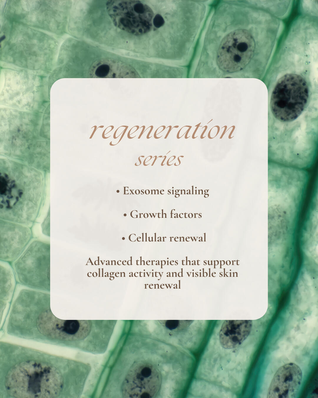 We support skin at the level of function — not force.Each treatment focuses on cellular communication, barrier integrity, and regenerative signaling to improve skin health over time.